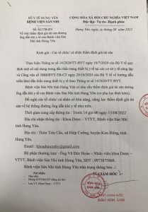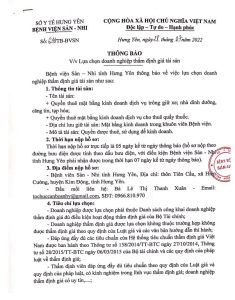 Thông báo về việc thẩm định giá tài sản đường ống dẫn khí y tế của Bệnh viện Sản Nhi tỉnh Hưng Yên