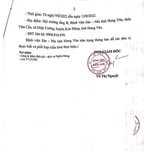 Thư mời về việc khảo sát, kiểm tra hiện trạng để đưa ra phương án sửa chữa hệ thống camera an ninh của Bệnh viện Sản – Nhi tỉnh Hưng Yên