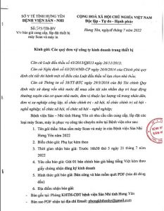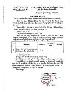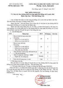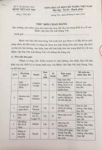 Thư mời chào hàng bảo dưỡng, sửa chữa, mua sắm linh kiện thay thế cho các trang thiết bị y tế của Bệnh viện Sản Nhi tỉnh Hưng Yên